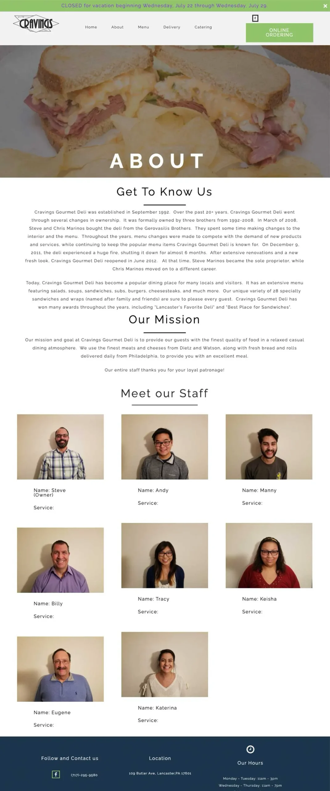 Cravings Deli About Page - Case Study
